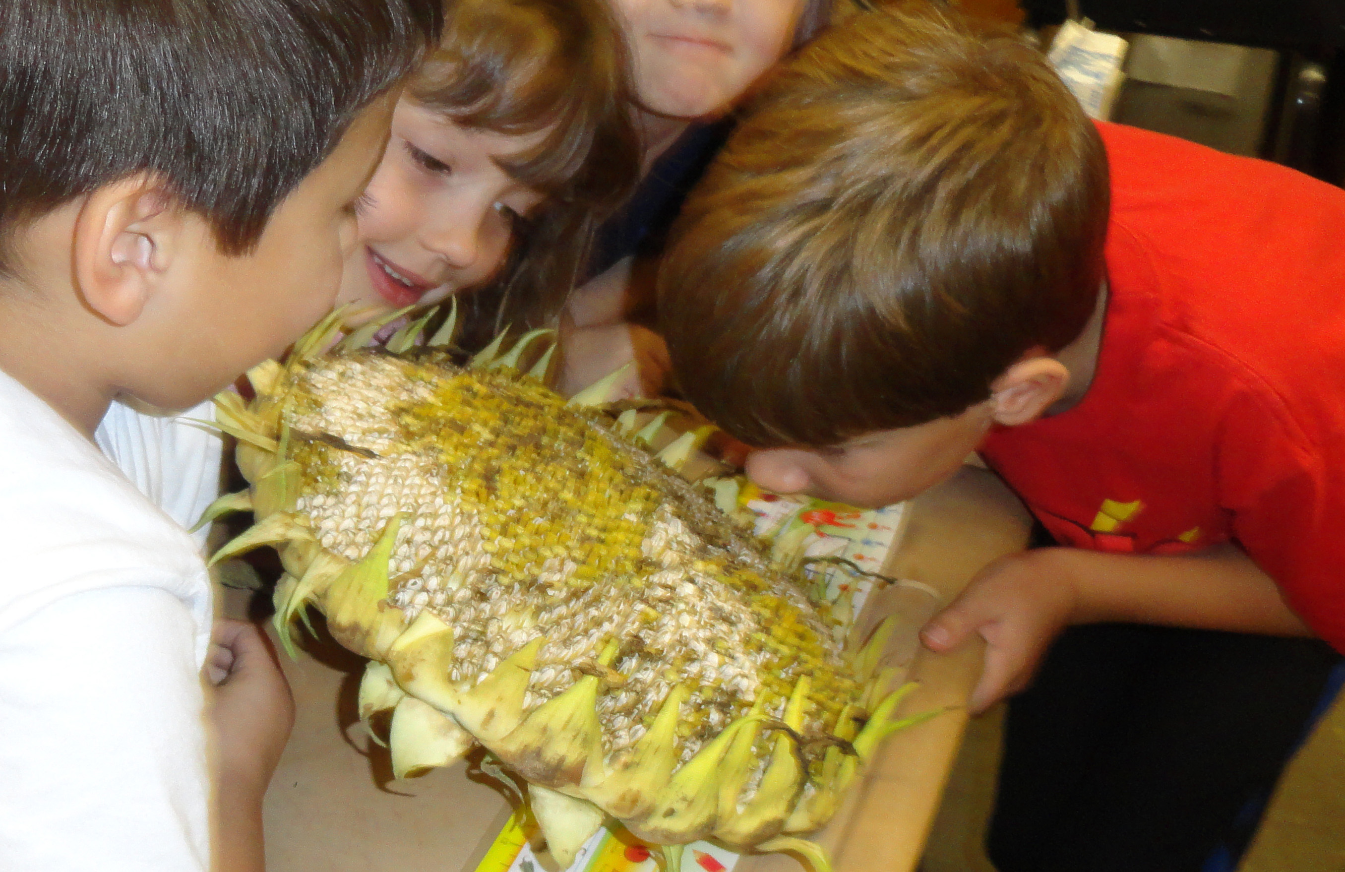 Presentation: Sit children in small groups and set a sunflower head before them. Ask the following questions and allow time for every child to share his or her ideas several times.