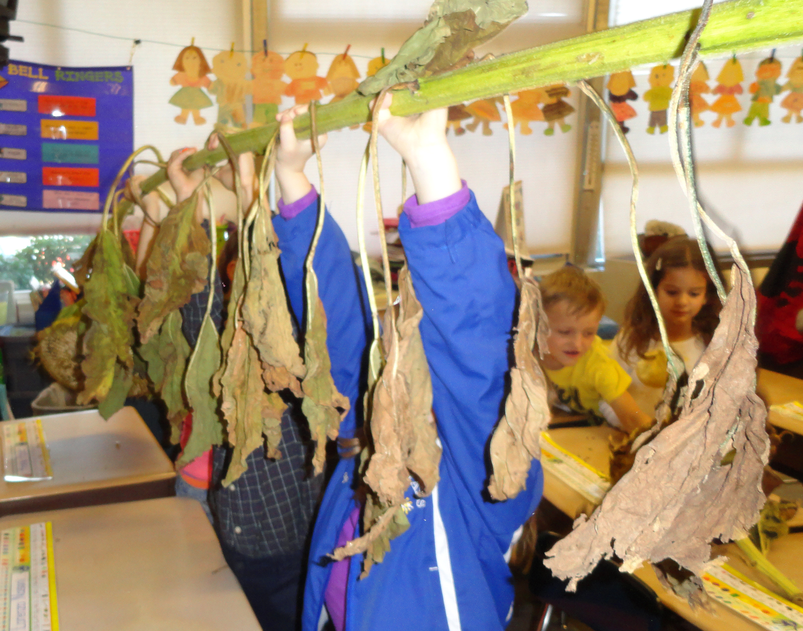 “I don’t hear anything.” “It’s quiet.”  “It’s just sitting there.””It crinkles when I touch it.” “It’s like dead.” “Sounds like paper.” “It would make noise in the wind, I think.”